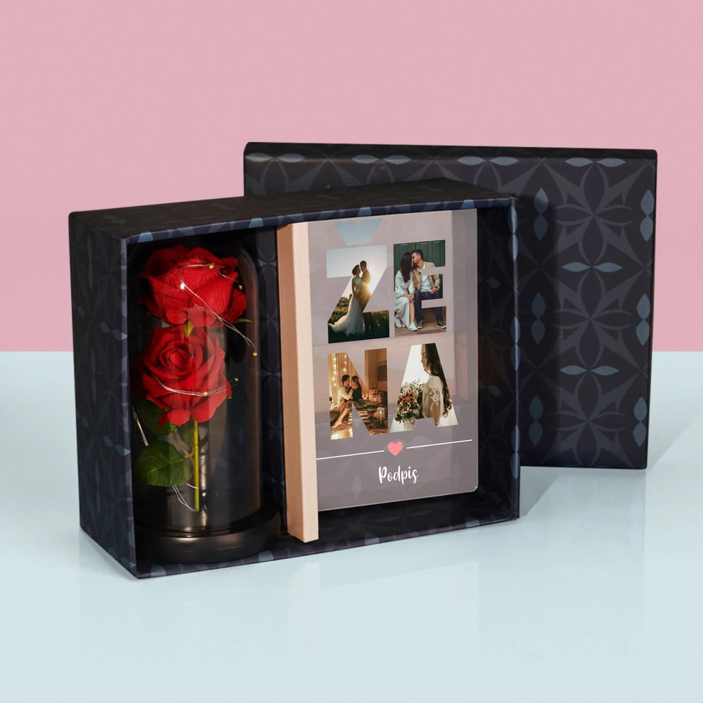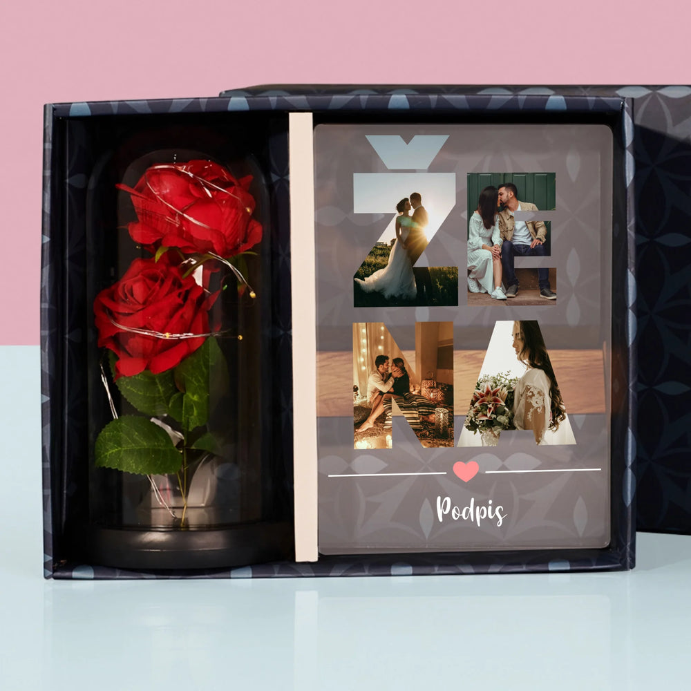 Slovo Z Fotek: Žena Z Vašich Fotek - Dárková sada s tiskem na akrylovém skle a věčnou růží