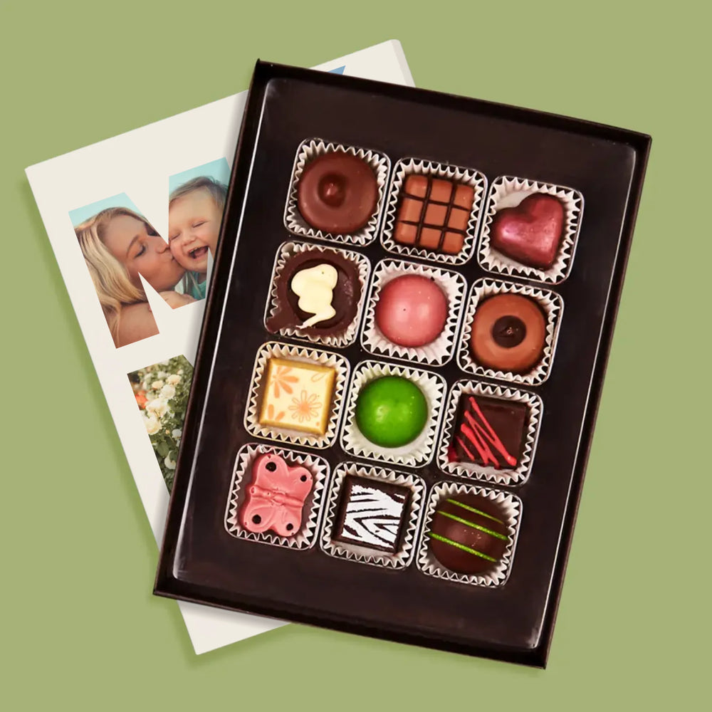 Lahodné belgické čokoládové pralinky v elegantní Krabici s naší vlastní personalizací.