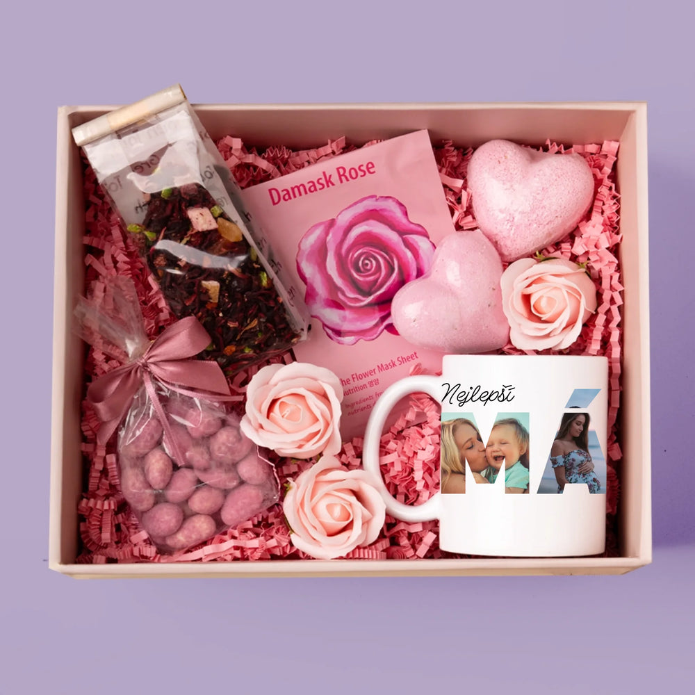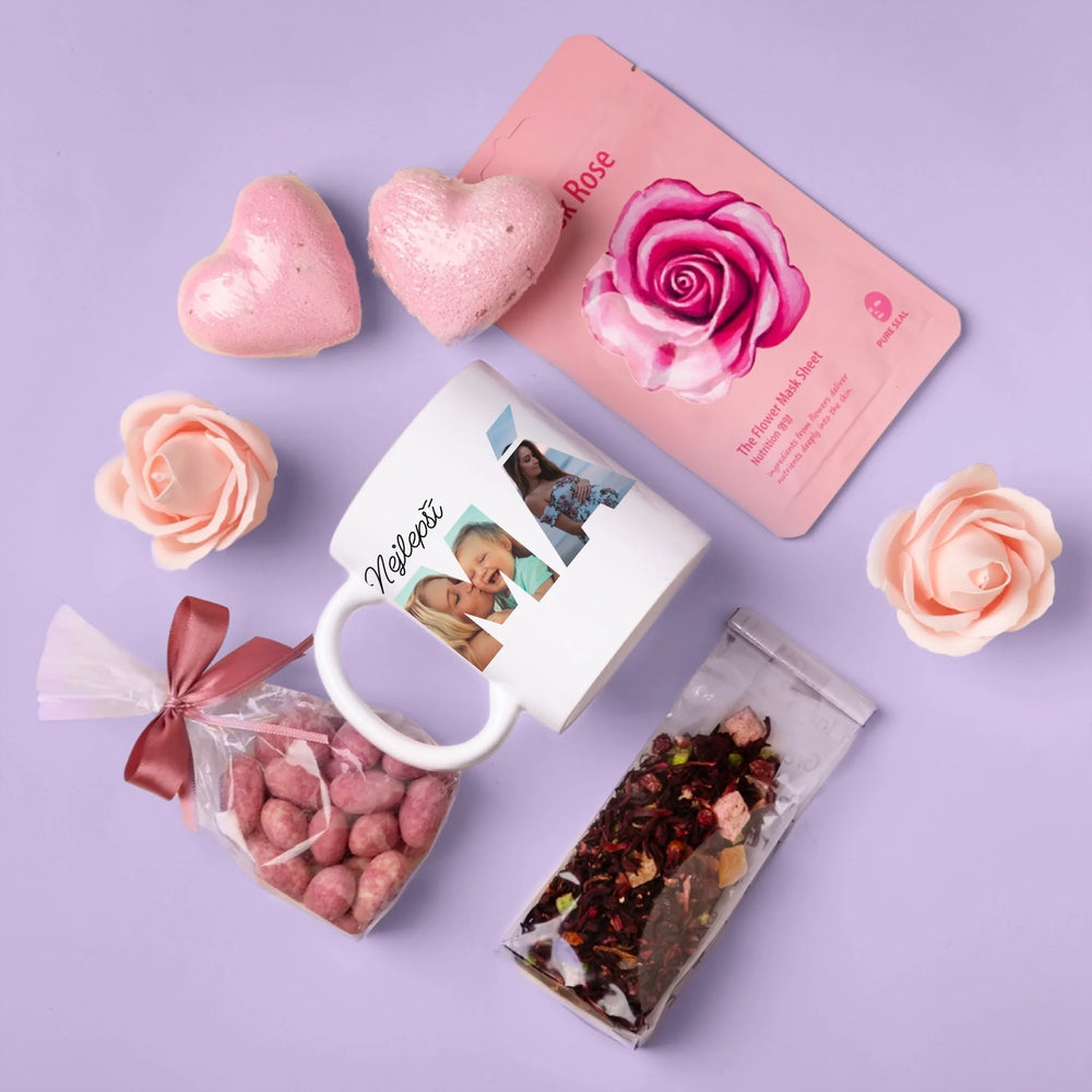 Slovo Z Fotek: Máma Z Tvých Fotek - Dárková sada s hrnkem a růžovým spa