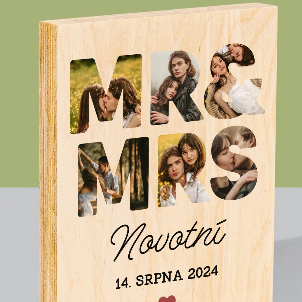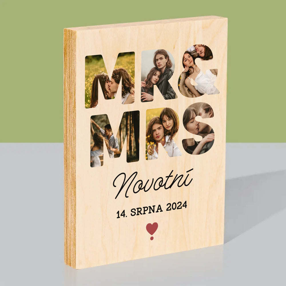 Slovo Z Fotek: Mr&Mrs - Tisk na dřevo - vertikální
