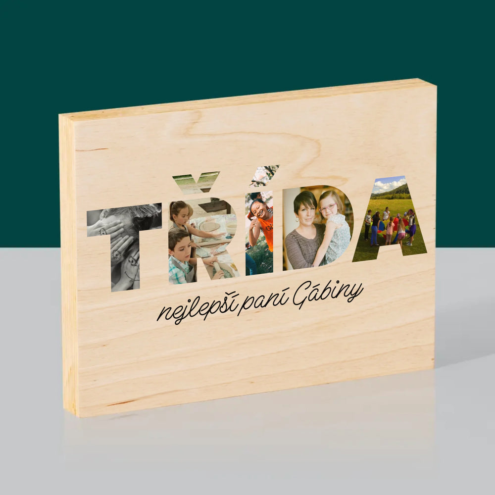 Slovo Z Fotek: Třída - Tisk na dřevo - horizontální