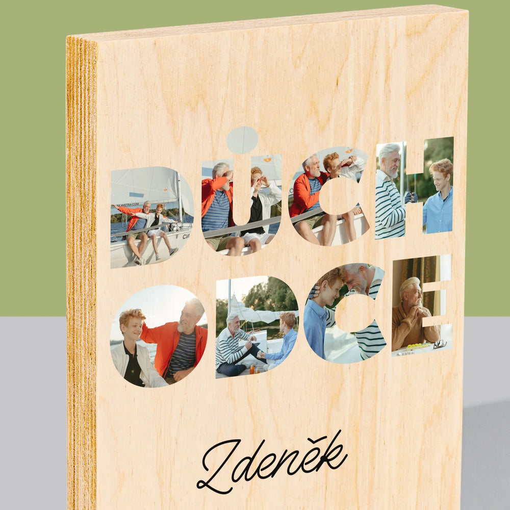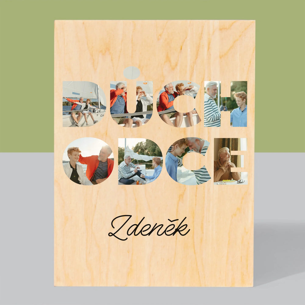 Slovo z fotografií: Důchodce - Tisk na dřevo - vertikální
