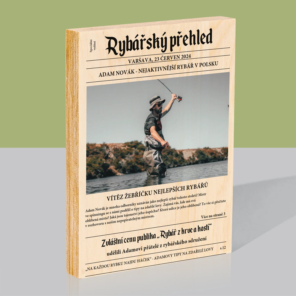 Fotografie a popisek: Recenze rybaření - Tisk na dřevo - vertikální